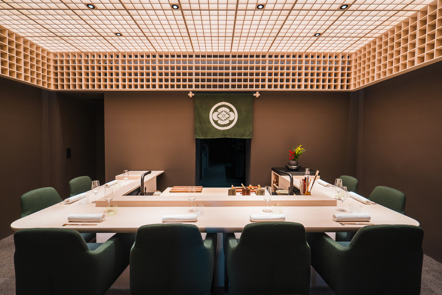 The logo — the Japanese family crest Maru ni Mokkō, the "encircled quince blossom" — has symbolised unity, perfection and balance for centuries. Like the omakase experience itself, it unites tradition and the present.